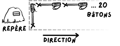 - Le quadrat (=carré) de 40cm de côté peut être fait grâce à 2 bâtons de randonnée marqués par un scotch à 40cm